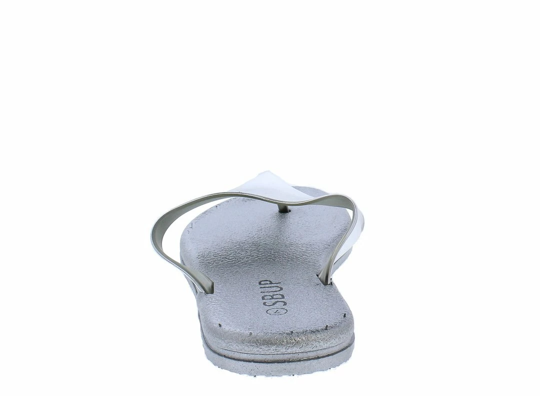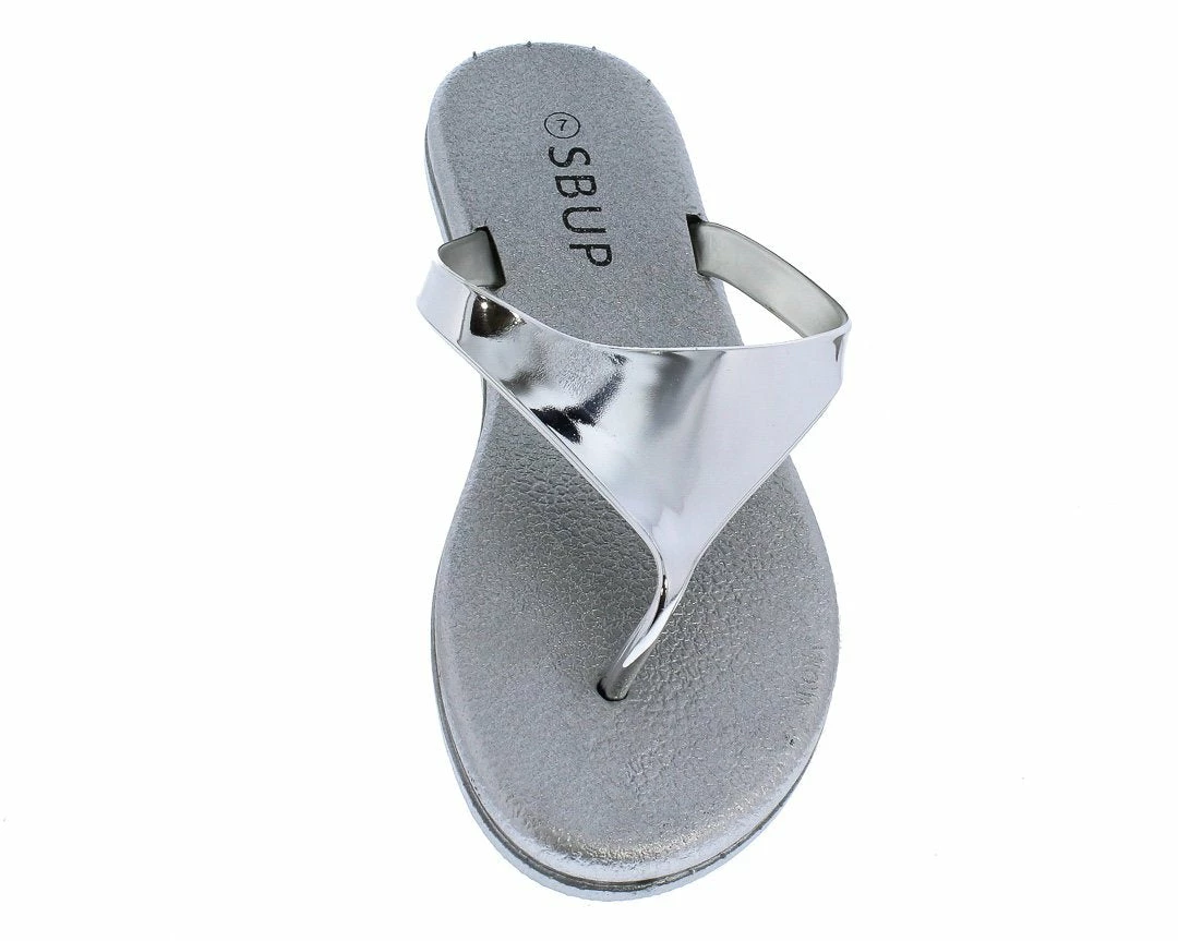 - Features a thong open toe paired with an uncovered heel.