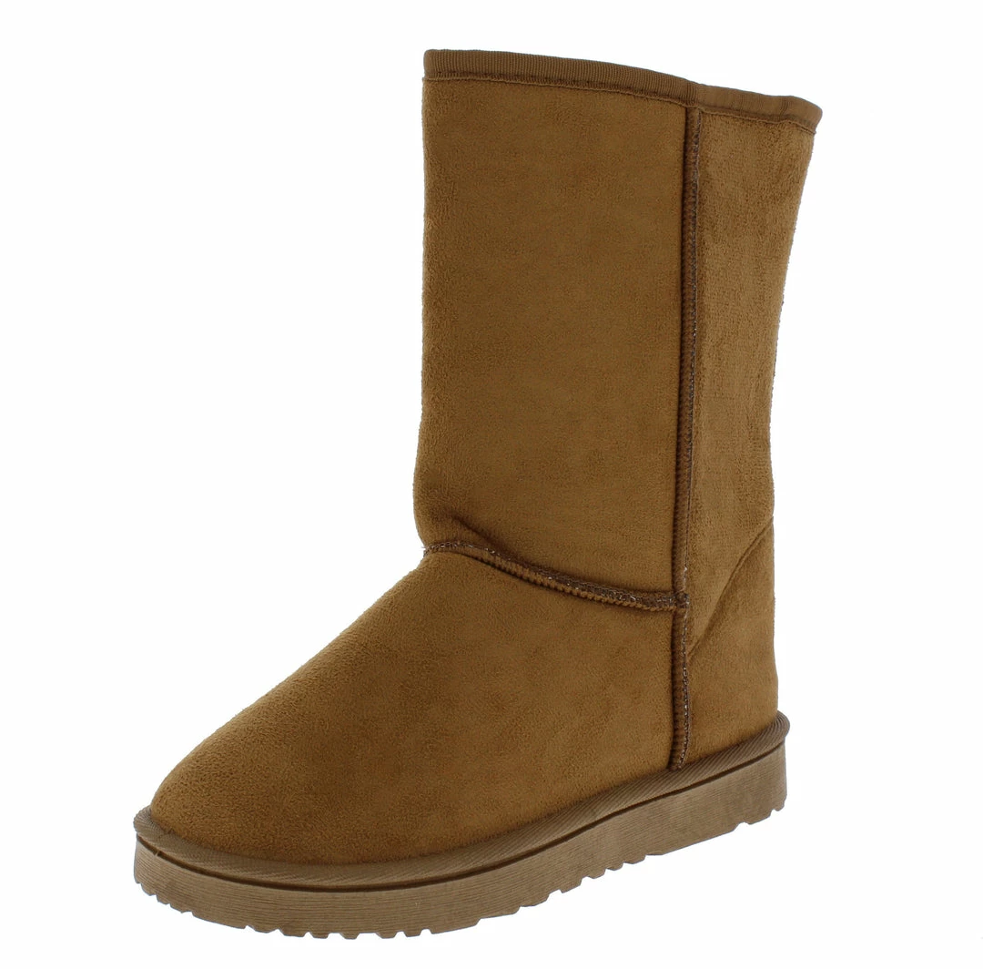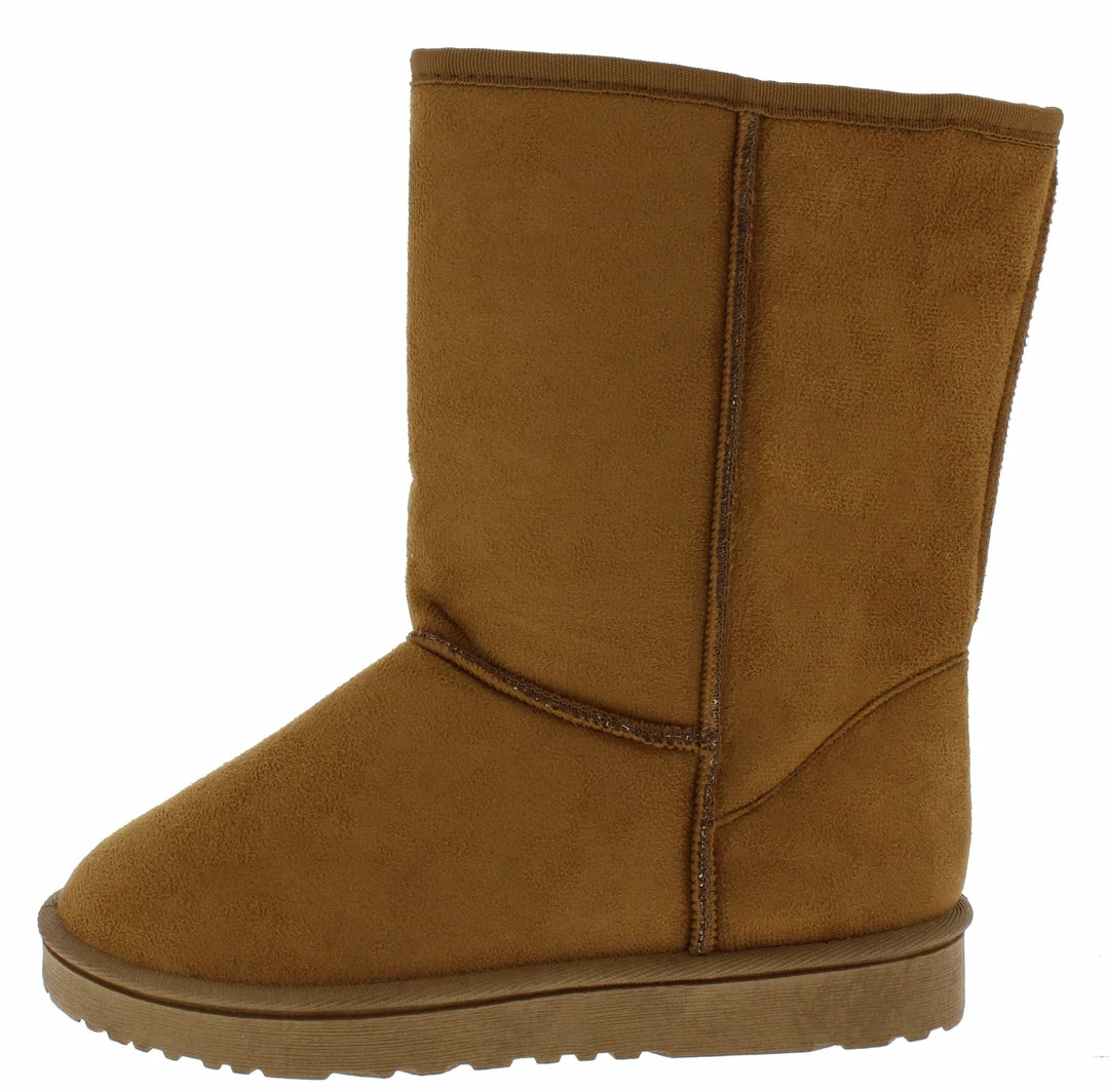 - A faux fur lining and pull on construction.