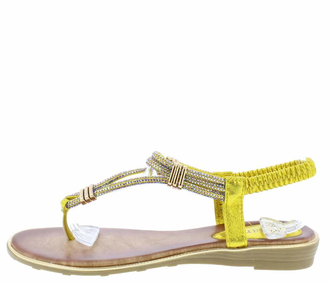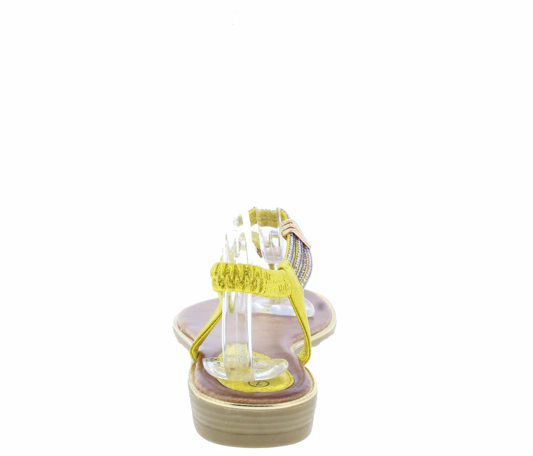 - Features a thong open toe paired with a slingback strap.