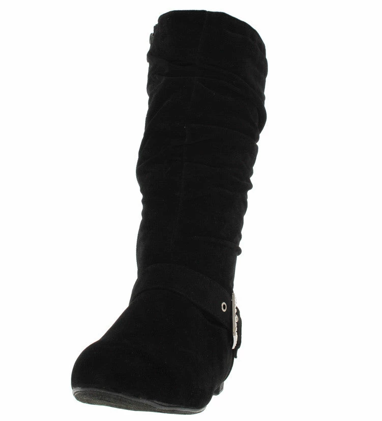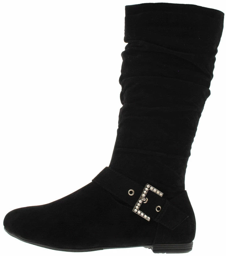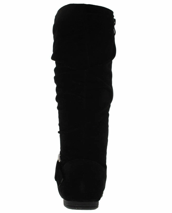 - Features a rhinestone embellished buckled detail along side of boot