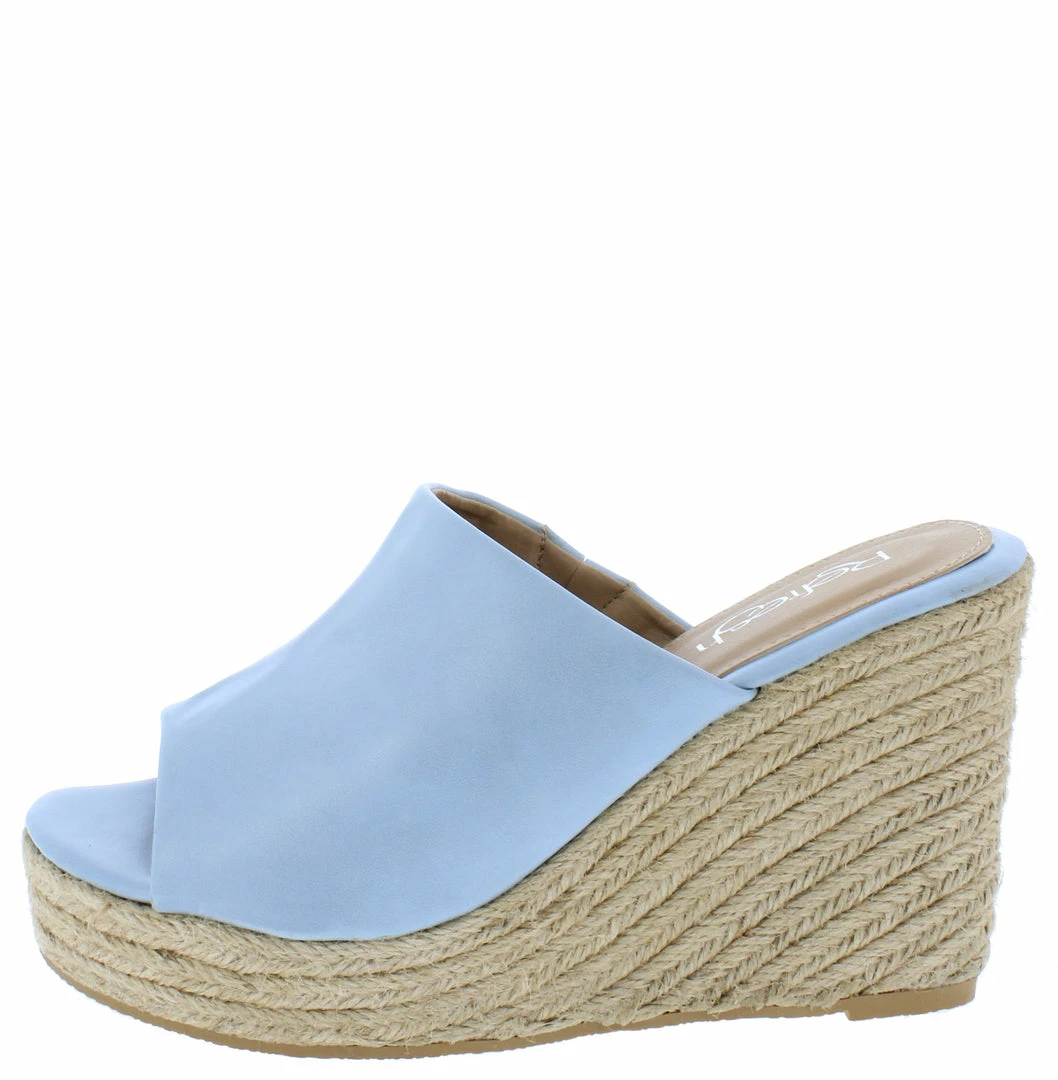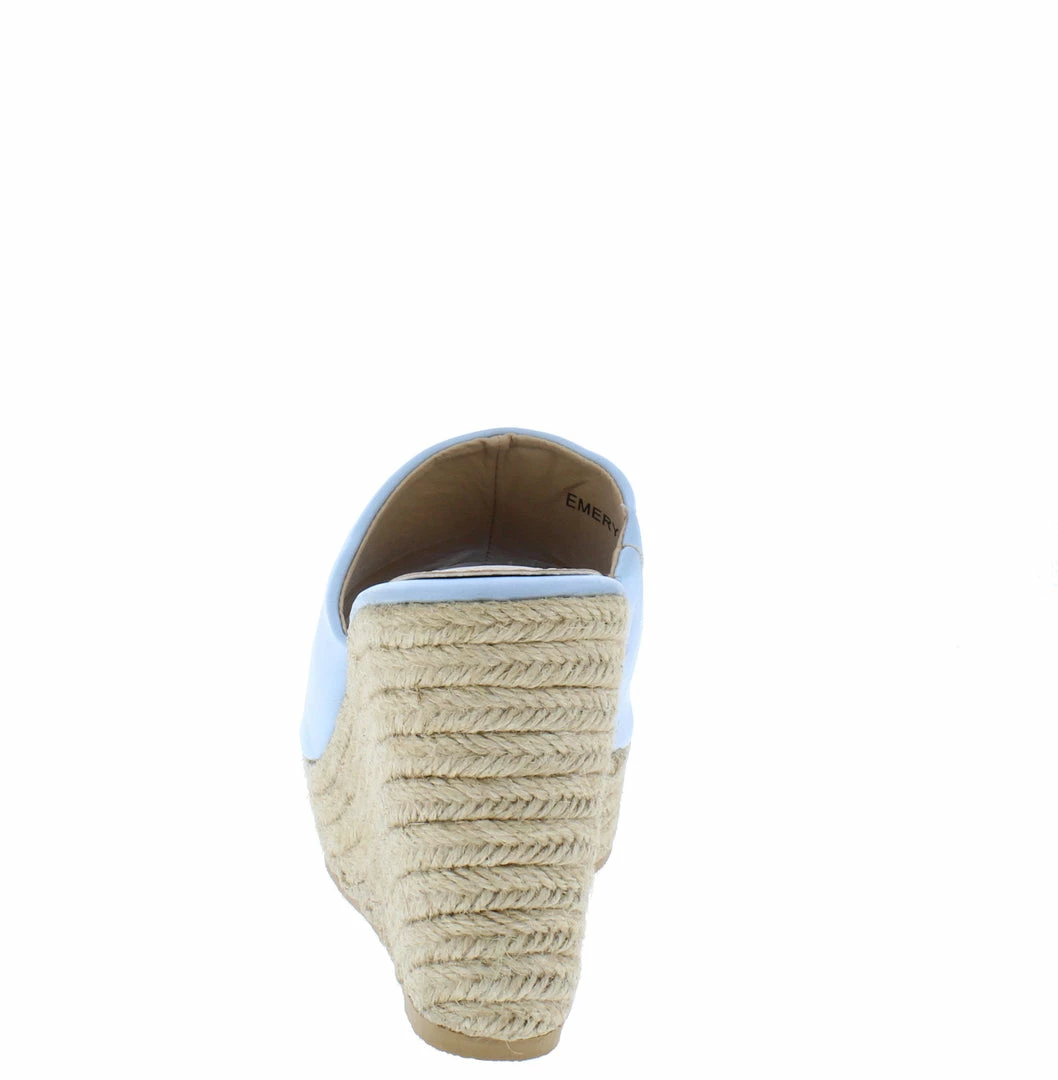 - A low platform espadrille sole and wedge heel.