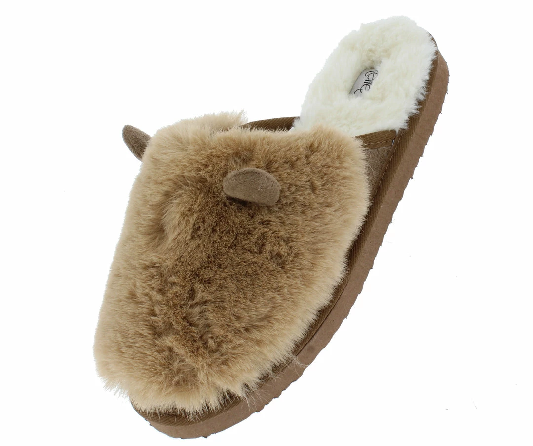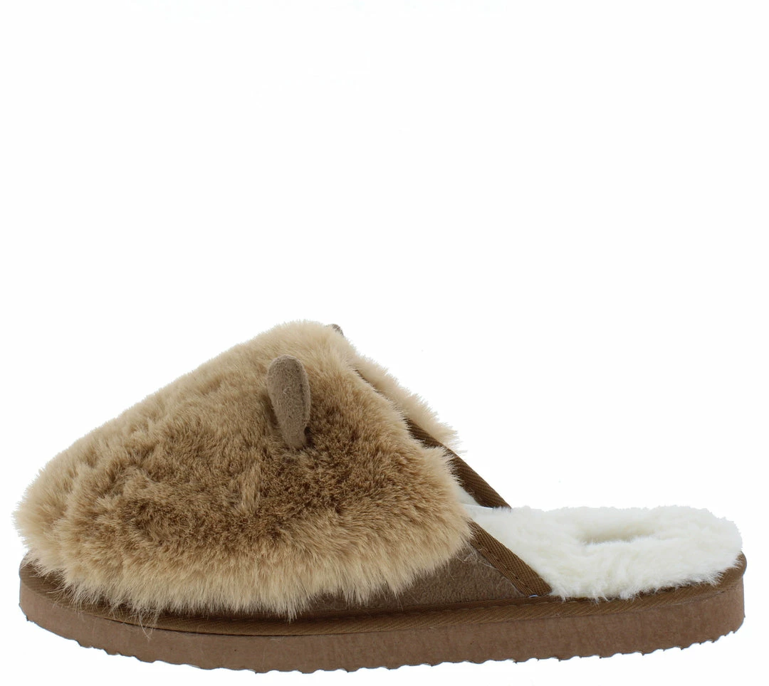 - A faux fur, slide on upper.