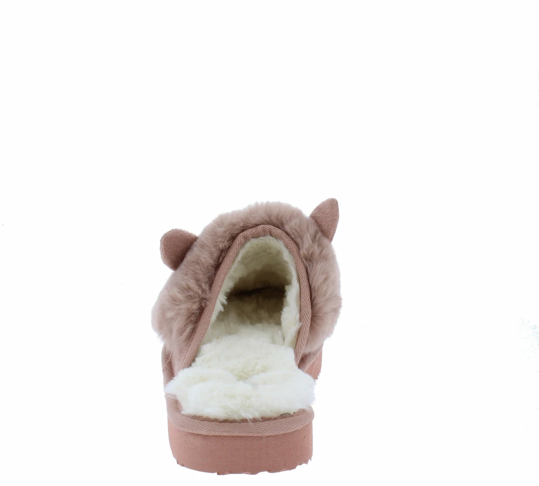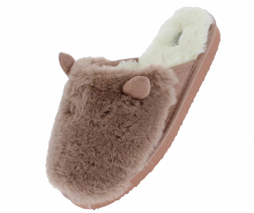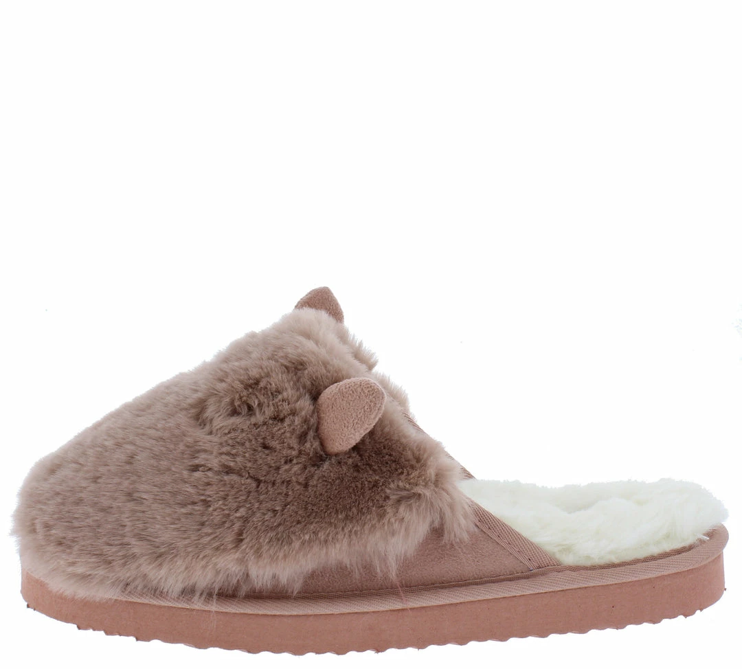 - A faux fur, slide on upper.