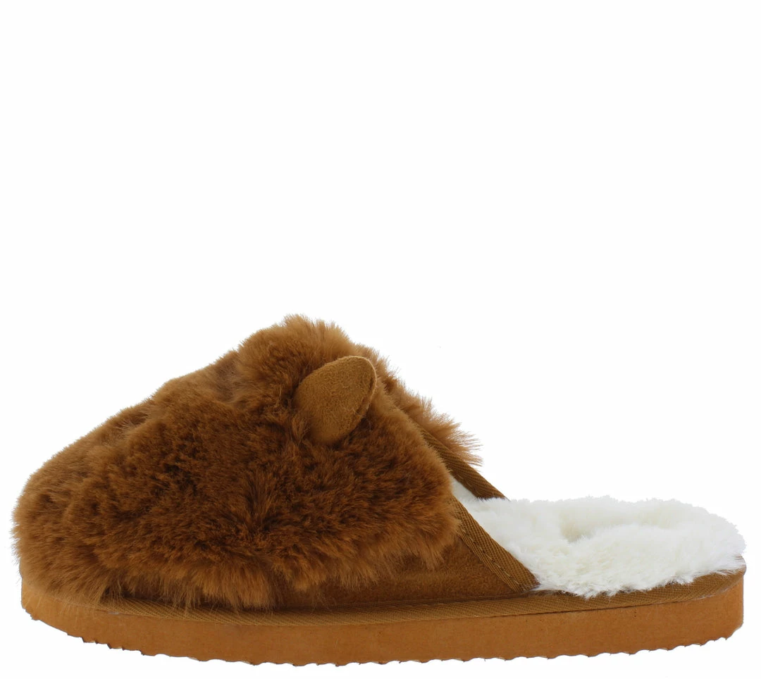 - A faux fur, slide on upper.