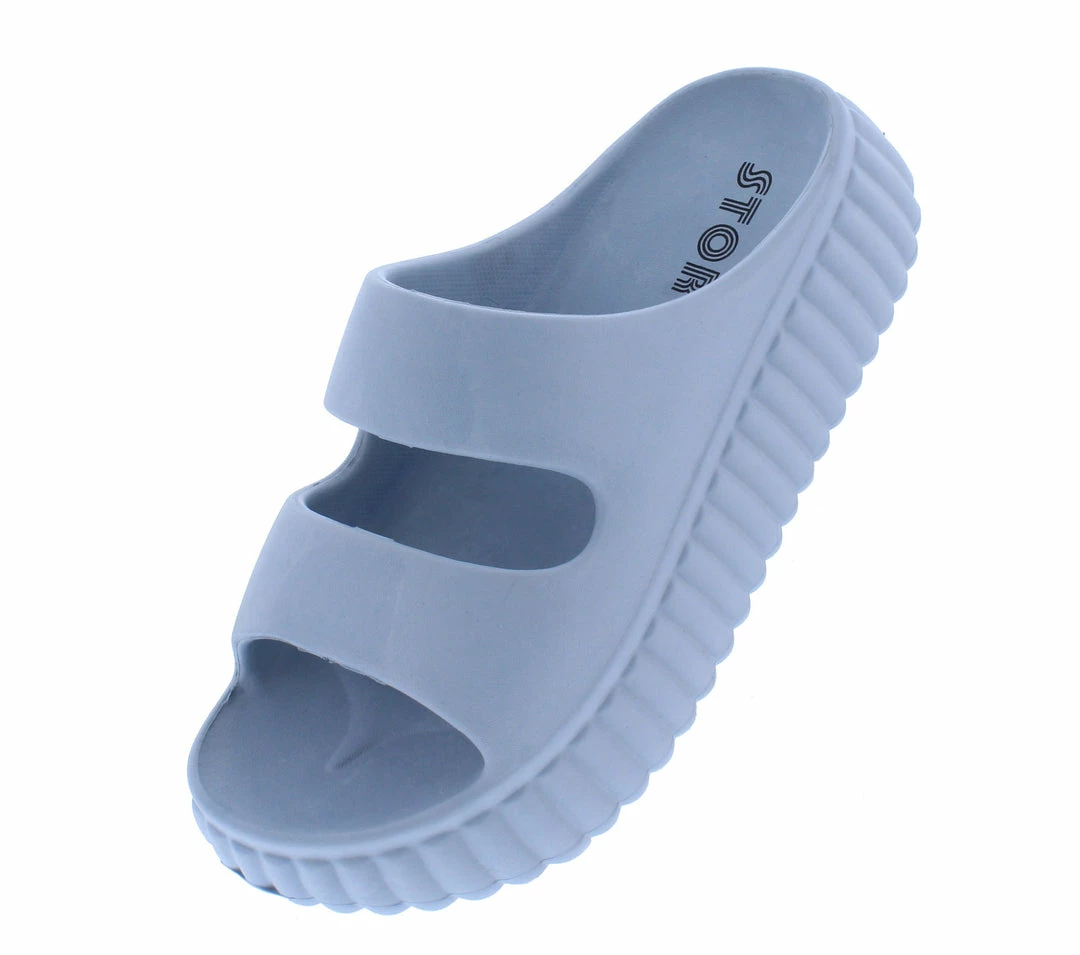 - A textured, chunky flat sole.